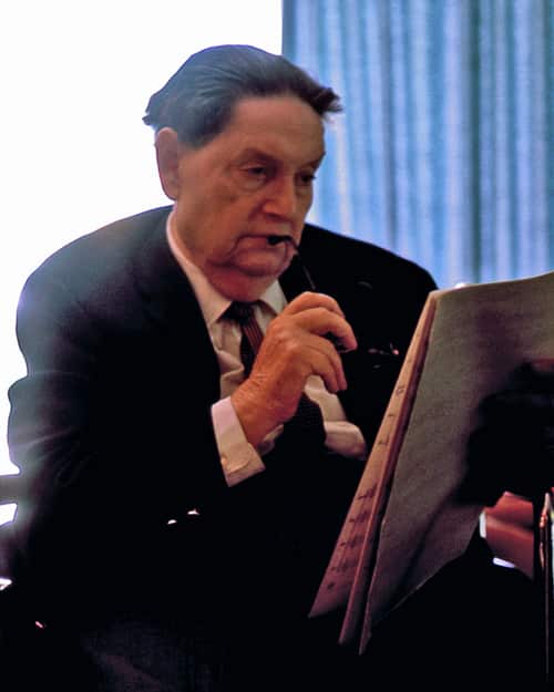 Image: Darius Milhaud, taken at his studio in Aspen, CO by SBMC president Eric Valinsky, 1969