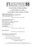 Kate Unger, soprano, is a third year computer science student at UCSB. She began singing when she joined the Davis Children’s Choir in first grade, continuing through junior high school. At age 9, she began playing viola, culminating in three years with the Davis High Baroque Ensemble. In addition, she sang with the Davis High School Madrigal Choir where she toured New York, England, and Scotland. She also had the privilege of being in regional and national American Choral Director Association (ACDA) Honor Choirs including in Texas, California, Utah, and Missouri. Currently, Ms. Unger takes lessons from UCSB Professor of Voice Benjamin Brecher and vocal coaching from Dr. John Ballerino.