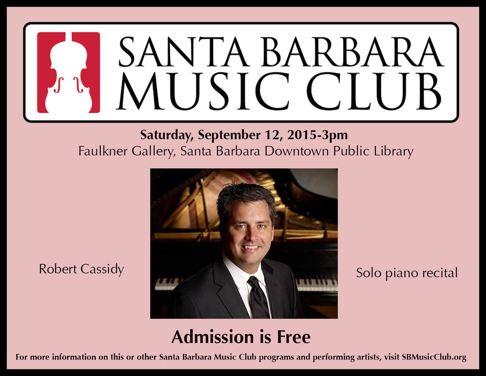One of the highlights of Santa Barbara Music Club’s concerts is the opportunity for audiences to hear great music from a variety of historical periods, with a diversity of musical forms, performed by excellent artists. This opening concert features internationally renowned pianist Robert Cassidy in a program highlighting beloved masterworks as well as new and exciting compositions.